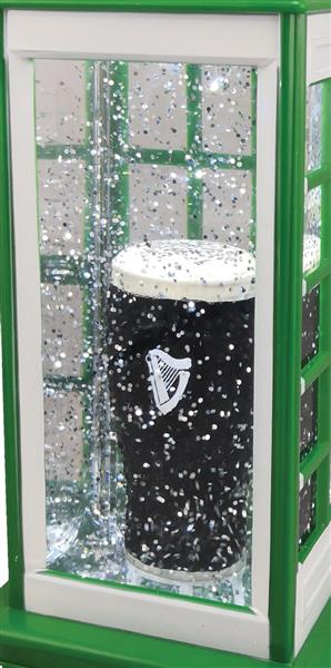 How different is this green telephone box with the the pint of Guinness, once lit you will see glitter appear around the globe in a cool white LED.