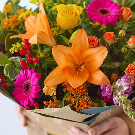 A handcrafted bouquet made by a local florist using the freshest blooms. This classic bouquet will feature flowers in bright vibrant shades like cerise and sunshine yellow.