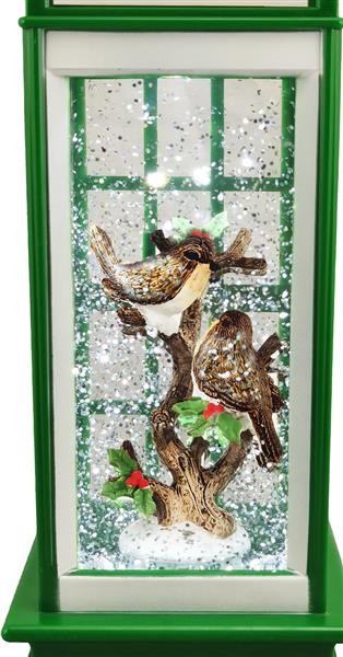 How different is this green telephone box with the the iconic robin bird, once lit you will see glitter appear around the globe in a cool white LED.